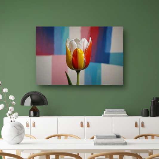 Abstracte tulp met kleurrijk patroon canvas met baklijst