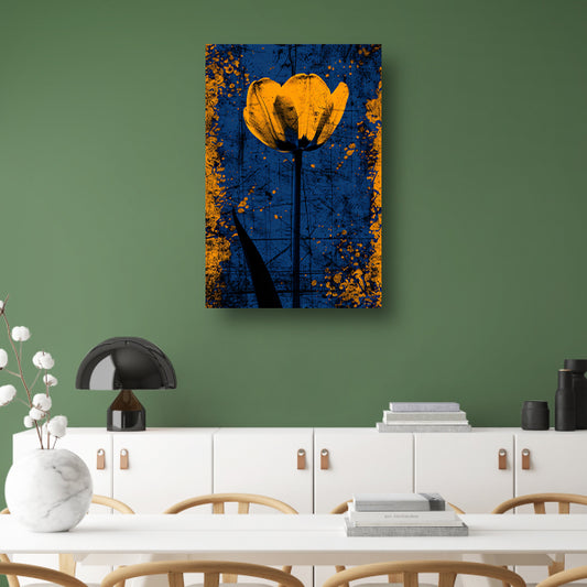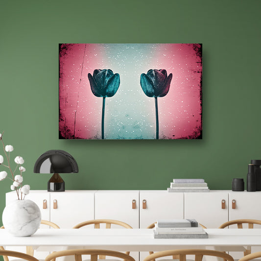 Abstracte tulp tegen dynamische blauwe achtergrond canvas met baklijst