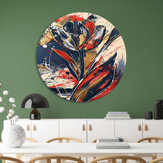 Abstracte tulpen kunst met dynamische kleuren aluminium muurcirkel