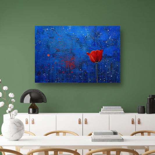 Abstracte tulp tegen dynamische blauwe achtergrond canvas