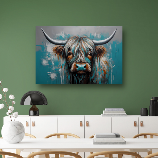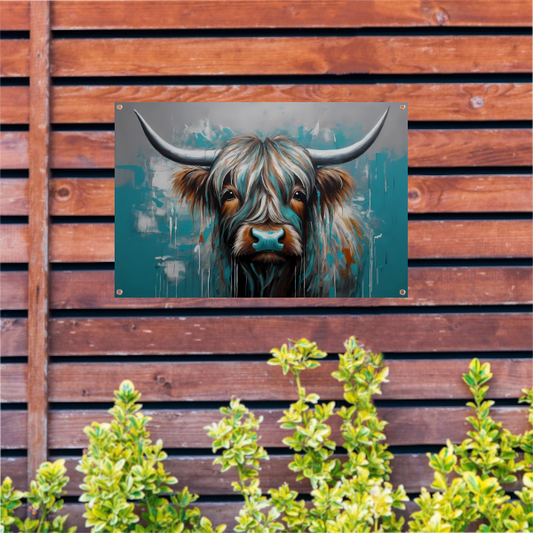 Abstracte Turquoise Schotse Hooglander in Olieverf tuinposter