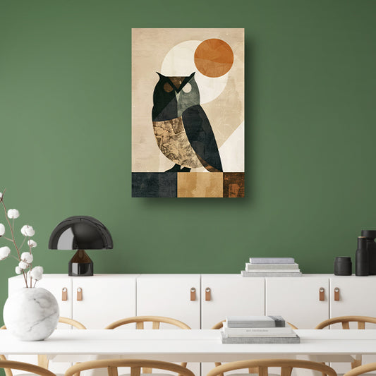Abstracte Uil met Geometrische Vormen en Neutrale Tinten canvas met baklijst