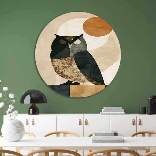 Abstracte Uil met Geometrische Vormen en Neutrale Tinten aluminium muurcirkel