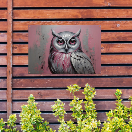 Abstracte Uil in Roze en Zilveren Tinten tuinposter
