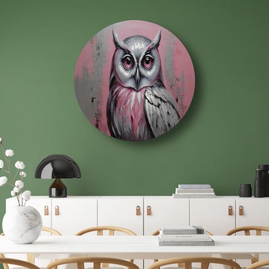 Abstracte Uil in Roze en Zilveren Tinten aluminium muurcirkel