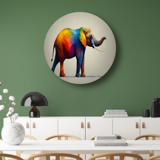 Abstracte veelkleurige olifant in moderne stijl aluminium muurcirkel
