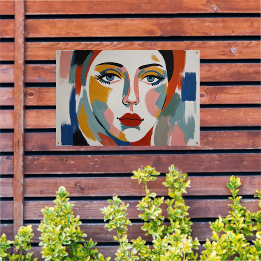 Abstracte Visie op Vrouwelijkheid in Kleur tuinposter
