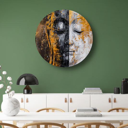 Abstracte Visie op Boeddha met Gouden en Zwarte Tinten aluminium muurcirkel