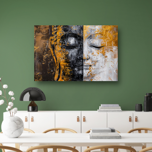 Abstracte Visie op Boeddha met Gouden en Zwarte Tinten canvas