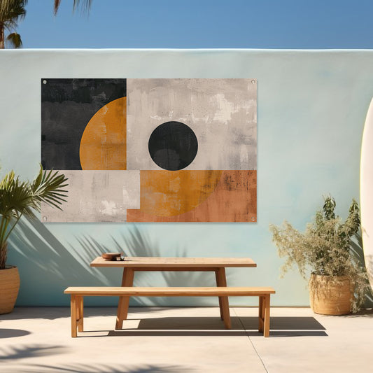 Abstracte vormen en contrasterende kleuren aluminium muurcirkel