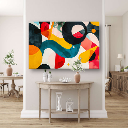 Abstracte vormen en levendige kleuren in harmonie acrylglas