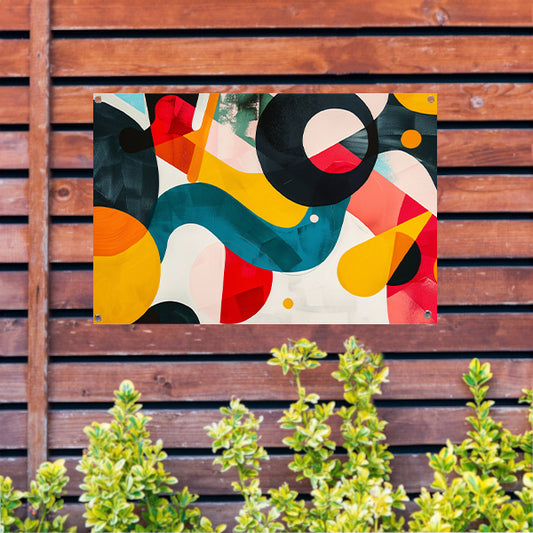 Abstracte vormen en levendige kleuren in harmonie tuinposter