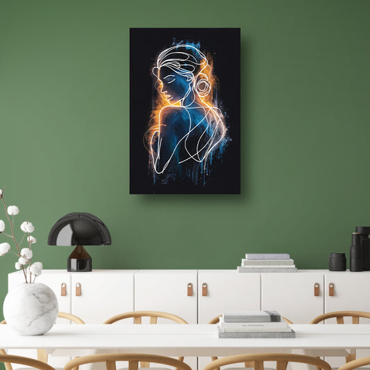 Abstracte Vrouwenfiguur in Lijnen en Kleur canvas met baklijst
