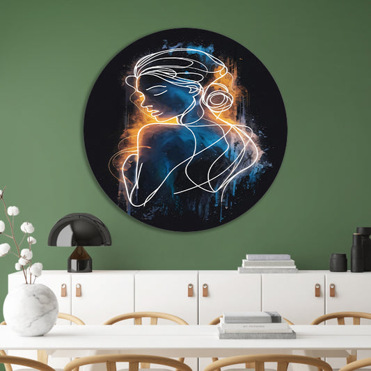 Abstracte Vrouwenfiguur in Lijnen en Kleur aluminium muurcirkel