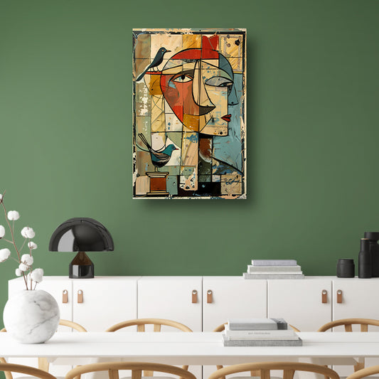 Abstracte vrouwengezicht in kleurrijke chaos canvas
