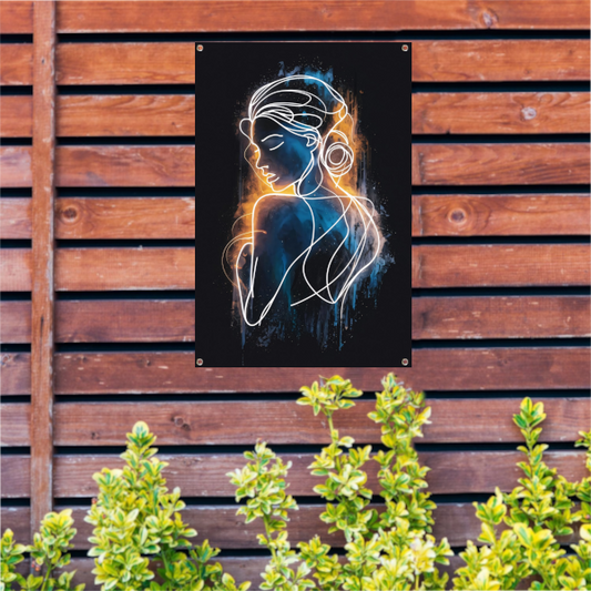 Abstracte Vrouwenfiguur in Lijnen en Kleur tuinposter