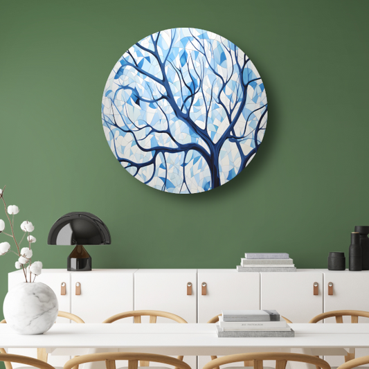 Abstracte Weergave van Blauwe Boomtakken aluminium muurcirkel