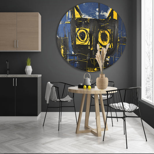 Abstract expressieve schilderij van een kat aluminium muurcirkel