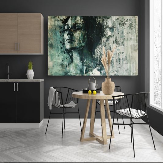 Abstracte weergave van een vrouw in contemplatie canvas met baklijst