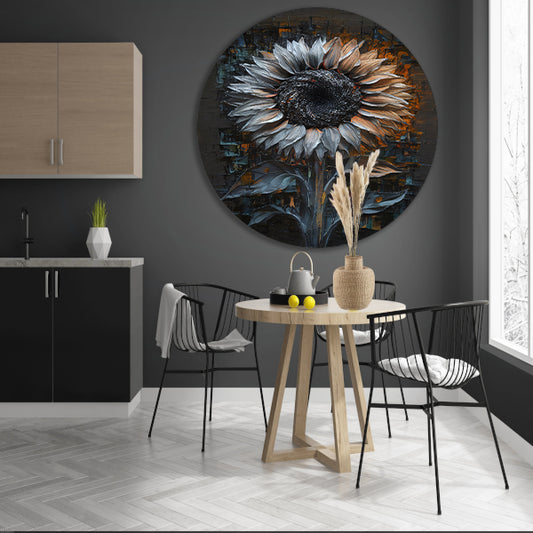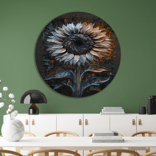 Abstracte Weergave van een Zonnebloem aluminium muurcirkel