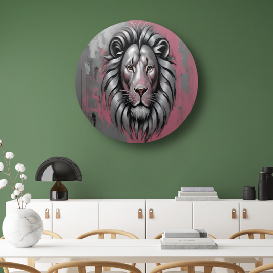 Abstracte Zilveren Leeuw met Roze Achtergrond aluminium muurcirkel