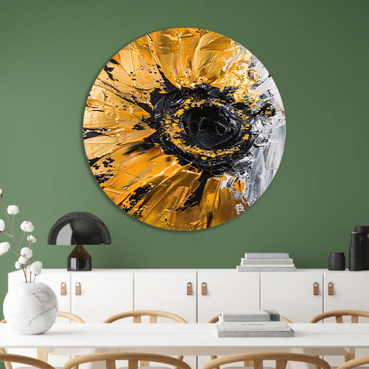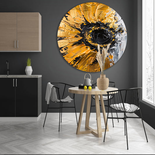 Abstracte zonnebloem in zwart, goud, oranje en wit forex muurcirkel