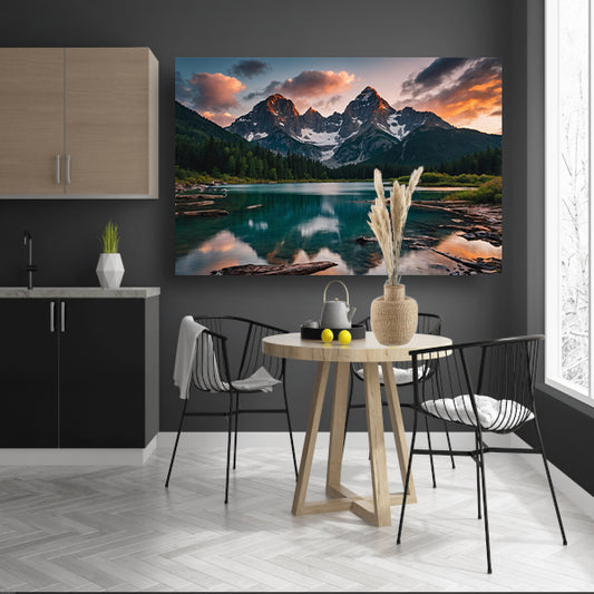 Adembenemend Berglandschap met Spiegelend Meer canvas