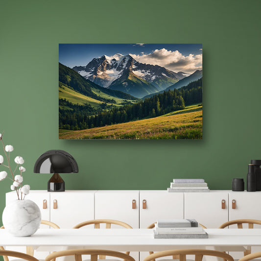 Adembenemend berglandschap met groene weiden canvas met baklijst
