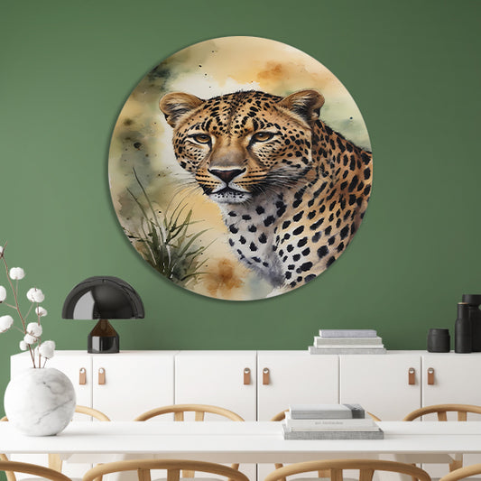 Alert Luipaard in Warme Aquarel Tinten forex muurcirkel