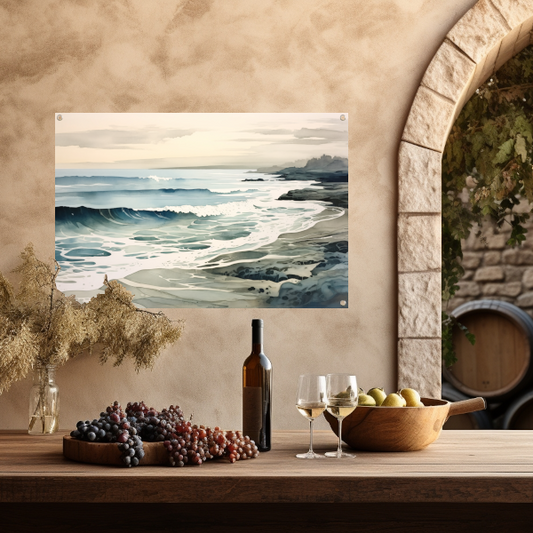 Aquarel landschap met blauwe lucht en witte wolken tuinposter