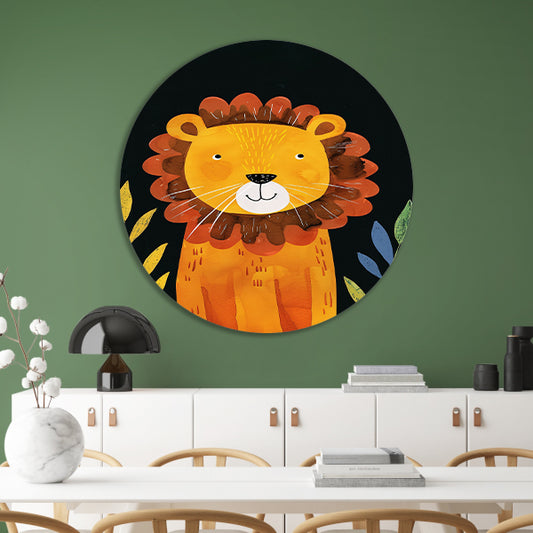 Aquarel Illustratie Vrolijke Leeuw aluminium muurcirkel
