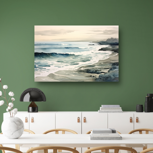 Aquarel landschap met blauwe lucht en witte wolken canvas met baklijst