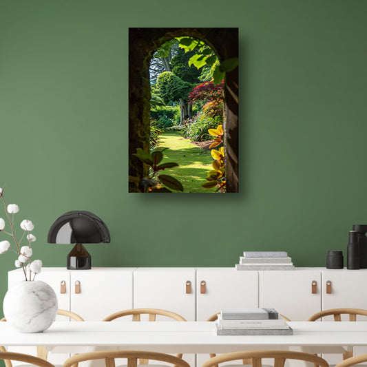 Betoverende Tuin Gezien Door Stenen Poort canvas