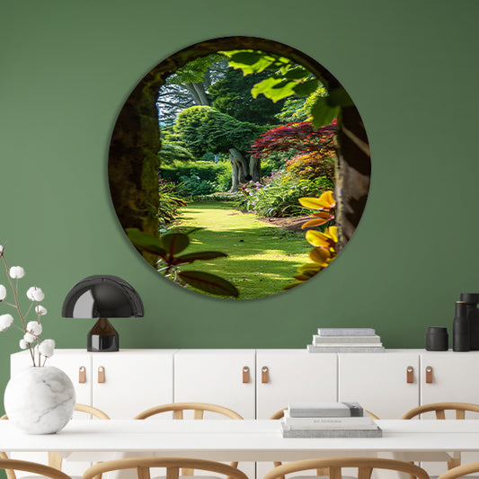 Betoverende Tuin Gezien Door Stenen Poort aluminium muurcirkel