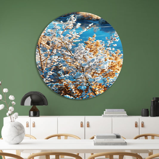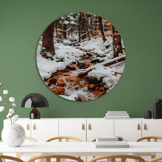 Bevroren Rivier in Winterbos aluminium muurcirkel