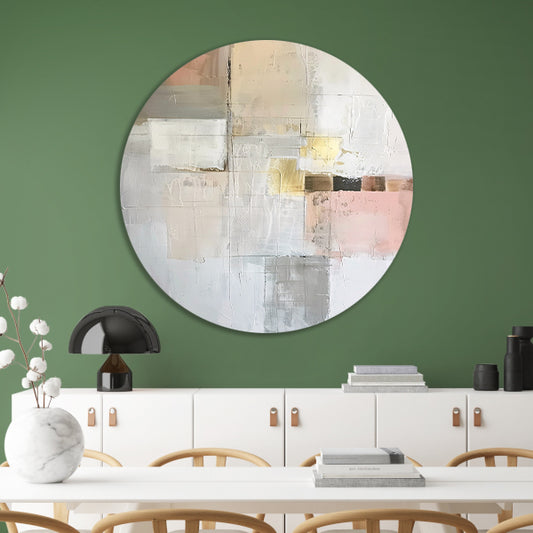 Abstract geometrisch patroon in zachte kleuren aluminium muurcirkel