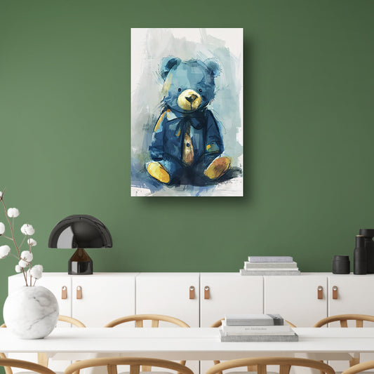 Blauwe beer met strik in impressionistische stijl canvas