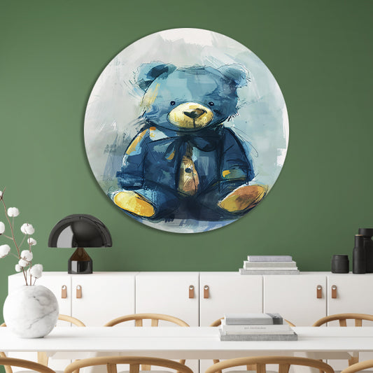 Blauwe beer met strik in impressionistische stijl aluminium muurcirkel
