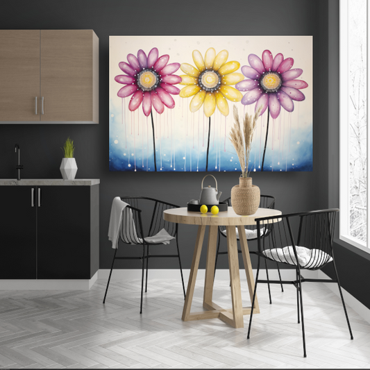 Blauwe bloemen op witte achtergrond canvas met baklijst
