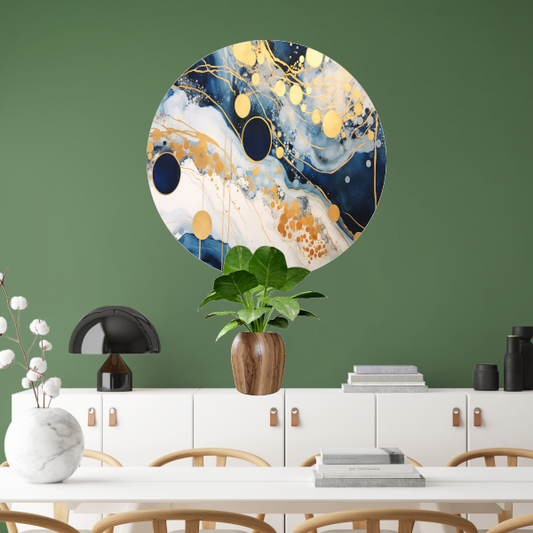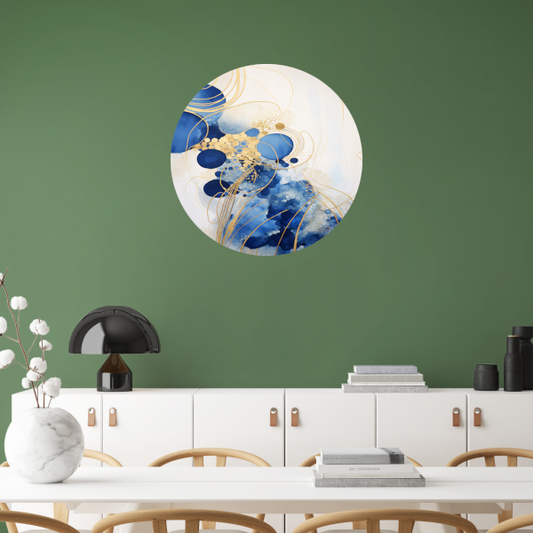 Blauwe Diepten met Gouden Accenten aluminium muurcirkel