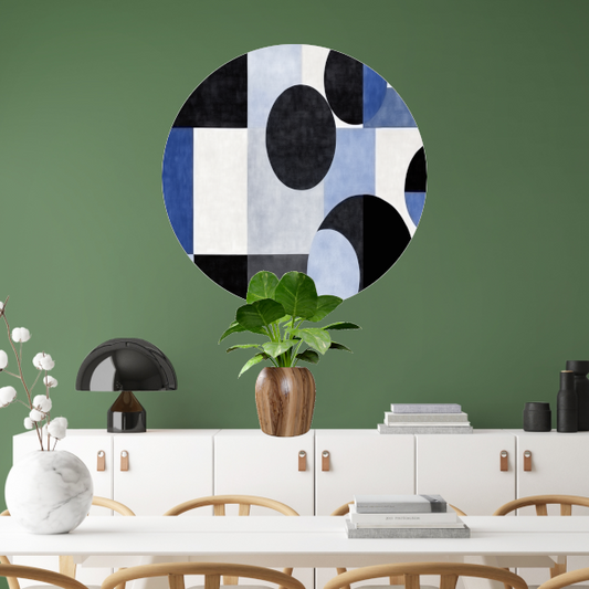 Blauwe Cirkels in Monochrome Tinten aluminium muurcirkel
