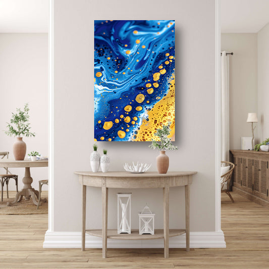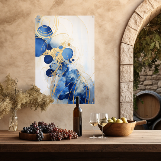 Blauwe en gouden abstracte schilderij canvas met baklijst