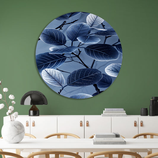 Blauwe en zwarte bladeren in minimalistische stijl aluminium muurcirkel