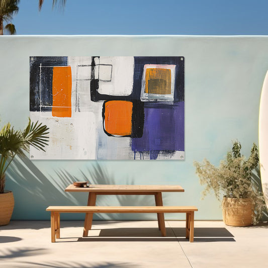 Abstract geometrisch schilderij met felle kleuren tuinposter