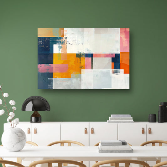 Abstract geometrisch schilderij met felle kleuren canvas met baklijst
