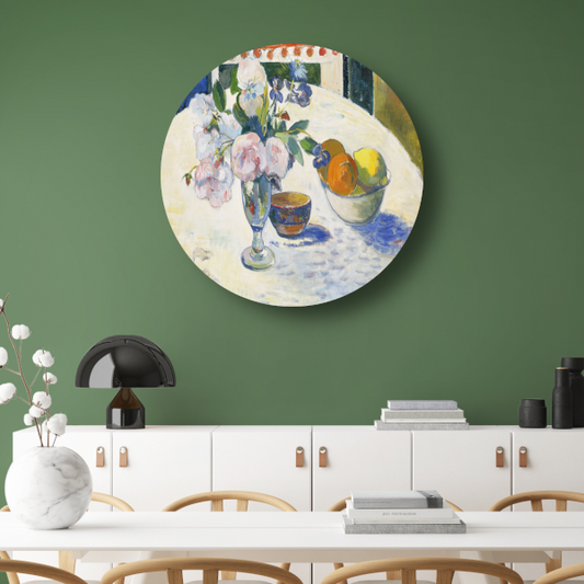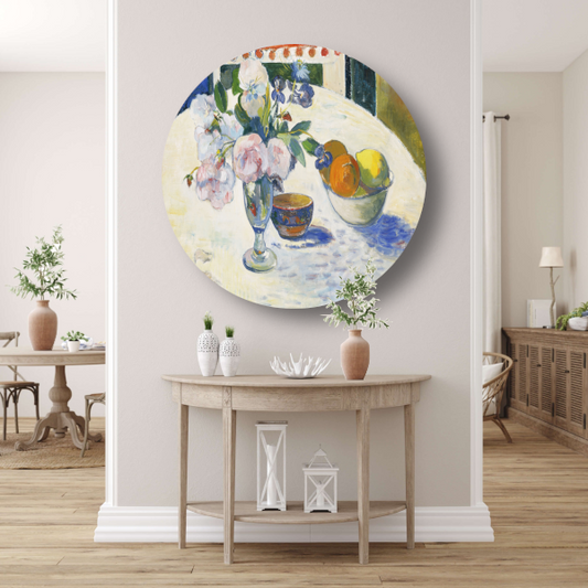 Bloemen en een fruitschaal op tafel - Paul Gauguin forex muurcirkel