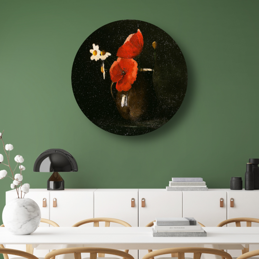 Bloemen in een terracotta vaas - Albertus Jonas Brandt aluminium muurcirkel
