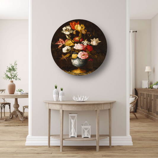Bloemen in een Wan-Li Vaas - Balthasar van der Ast aluminium muurcirkel