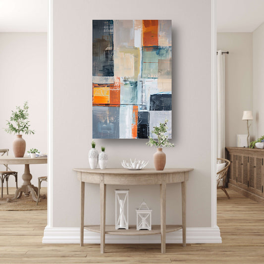 Abstract geometrisch schilderij met kleurblokken acrylglas