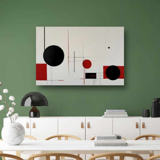 Abstract geometrisch spel in zwart en rood canvas met baklijst